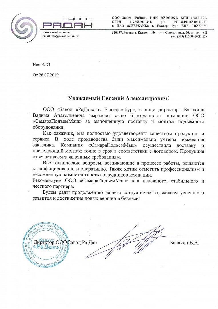 Подъемники установлены в соответствии с договорными сроками и запущены в эксплуатацию. Желаем дальнейших успехов в вашей работе.